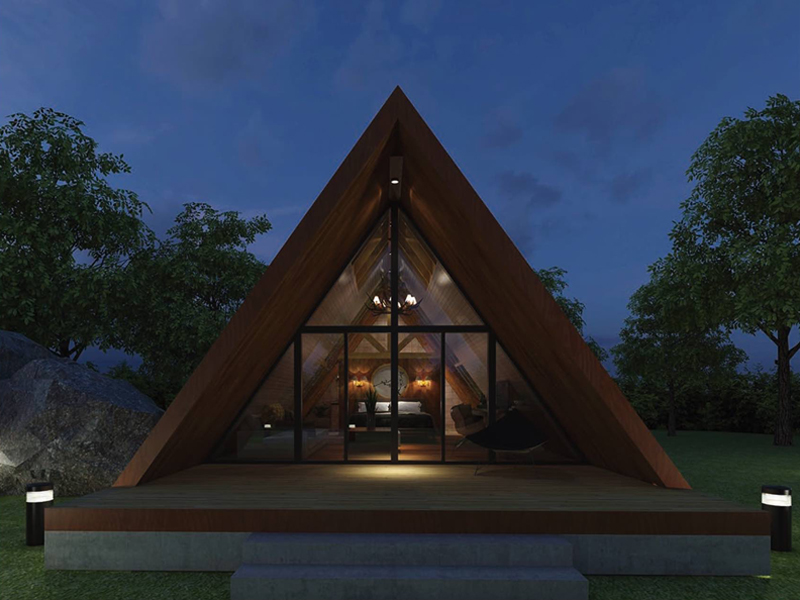 木屋的形狀和顏色設計主要是為了模糊外部和內部空間之間界限。木屋的設計旨在提供一個...